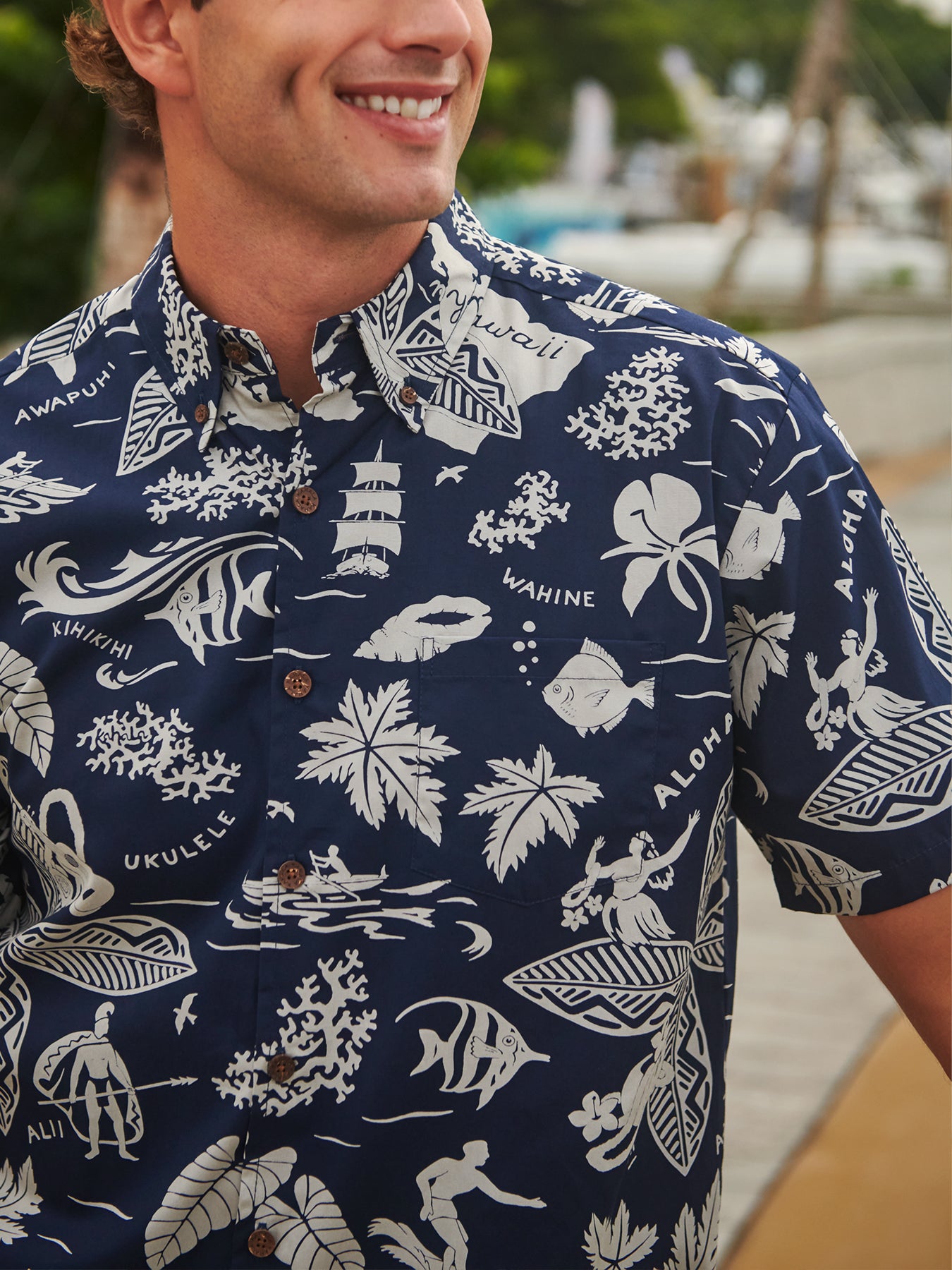 The hala tree in contrasting silhouettes for a modern island classic.