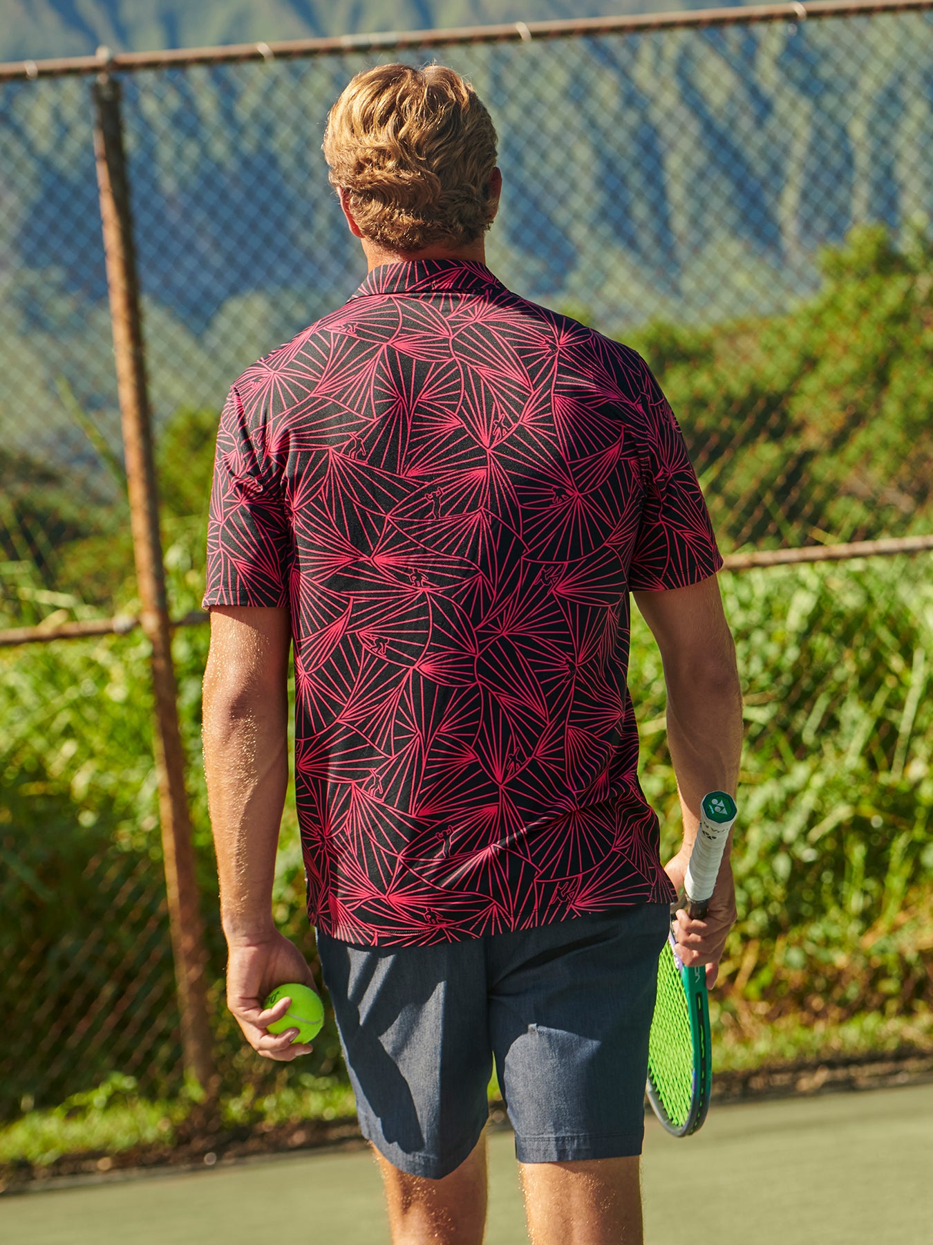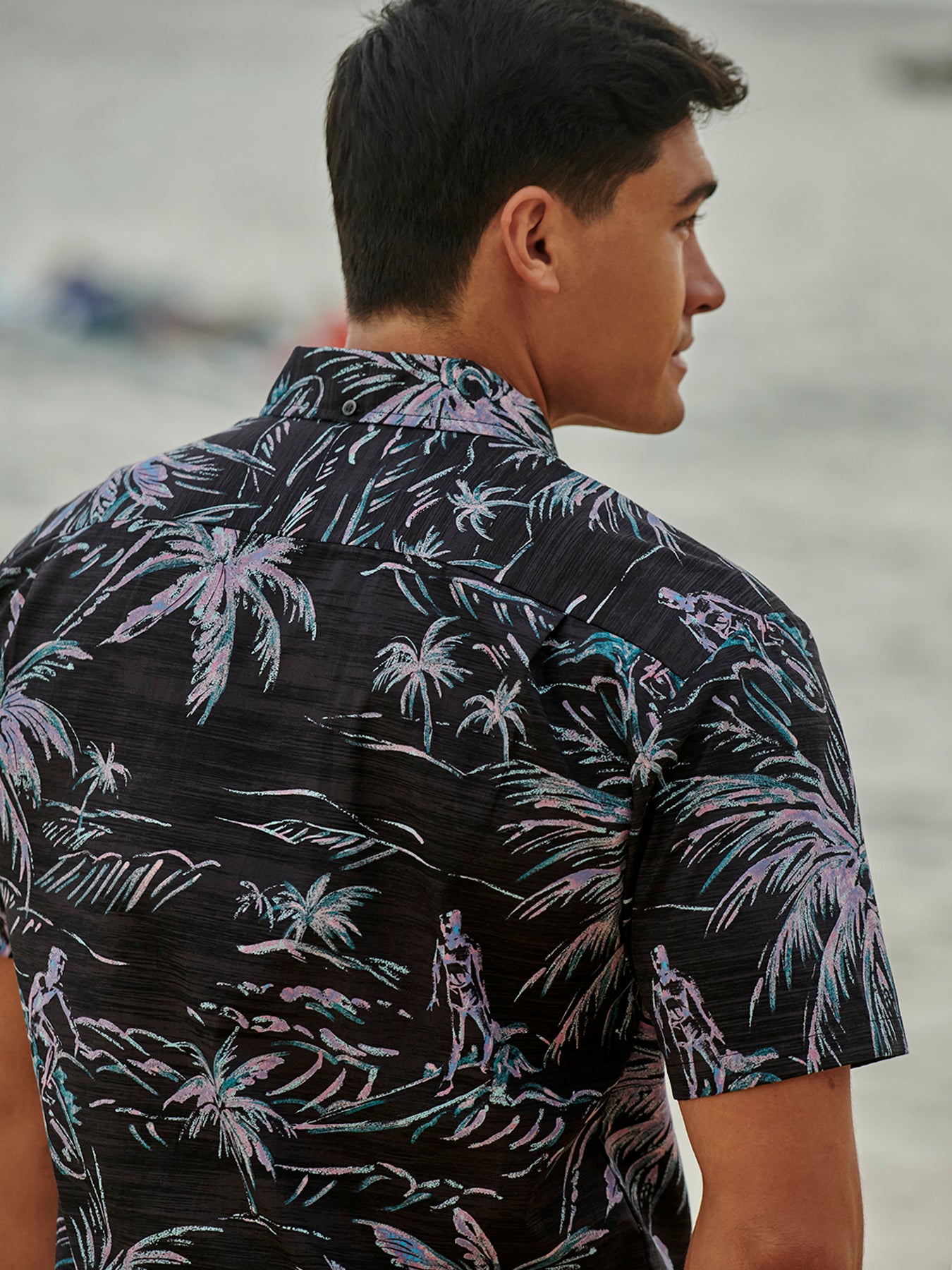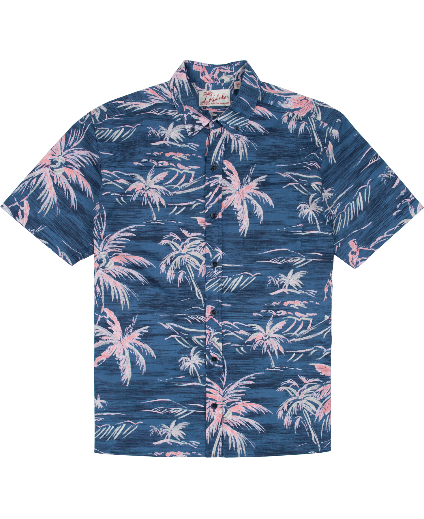 The vintage-inspired button-down collar, French front, and coconut buttons honor traditional aloha shirt silhouettes, while a matched pocket adds a refined touch. The bold, saturated colors are achieved with discharge printing, a technique that extracts dye from the fabric to reveal intricate motifs. Proudly made in Hawai‘i, Duke's Day embodies the Ambassador of Aloha in every stitch.