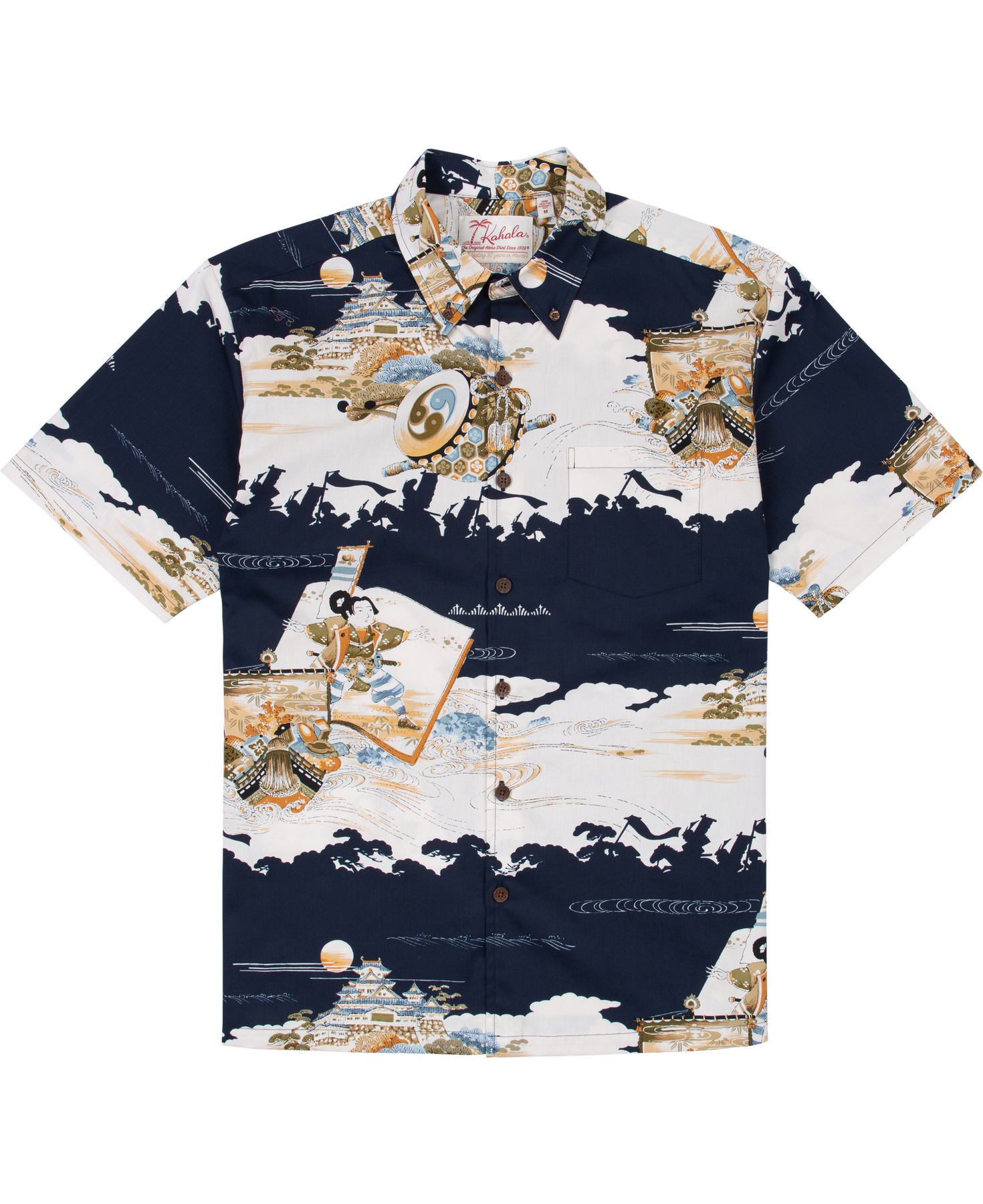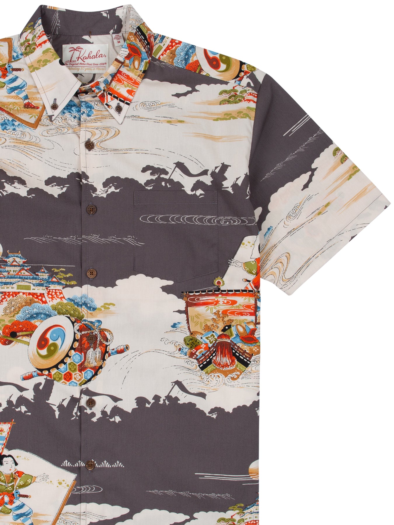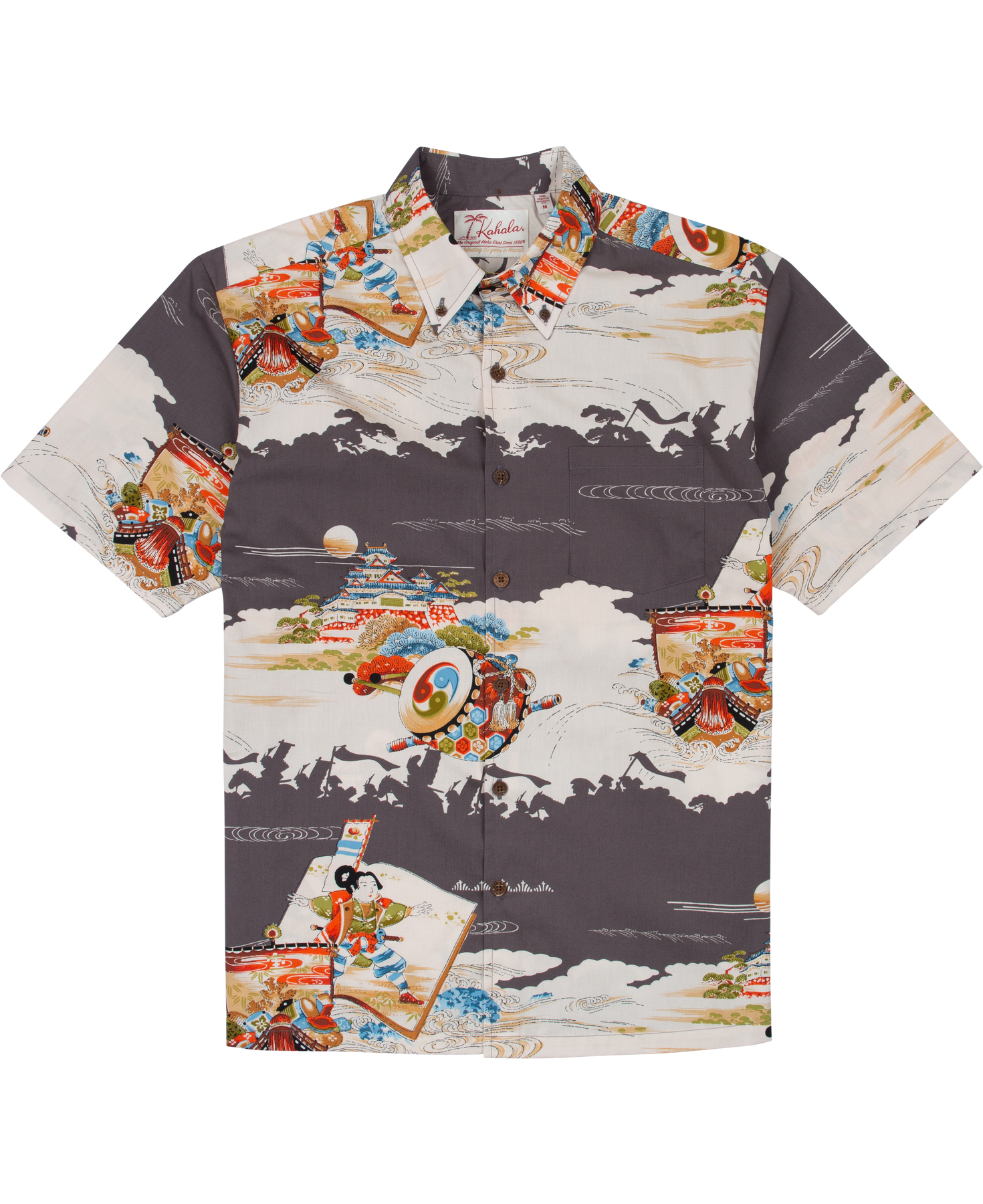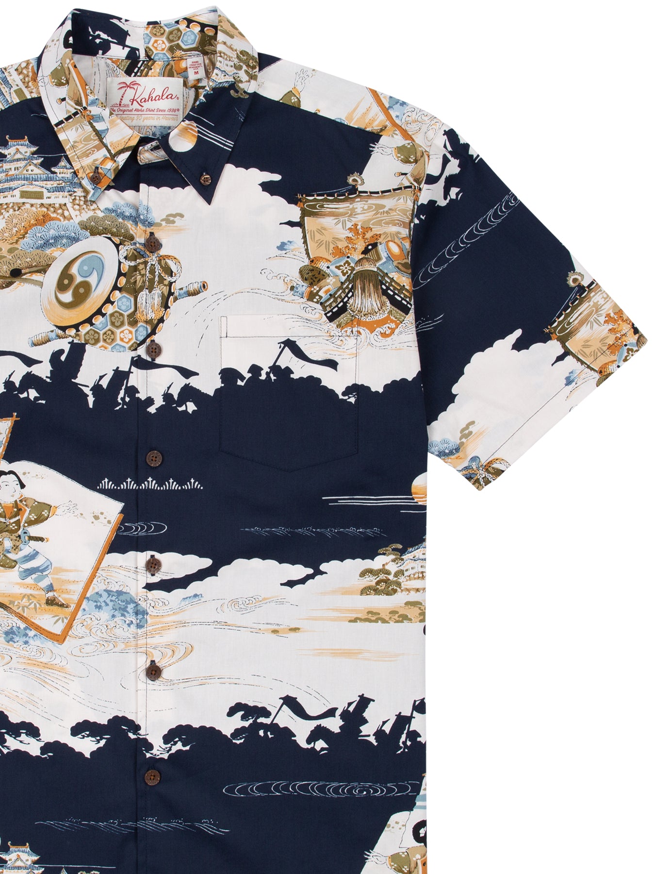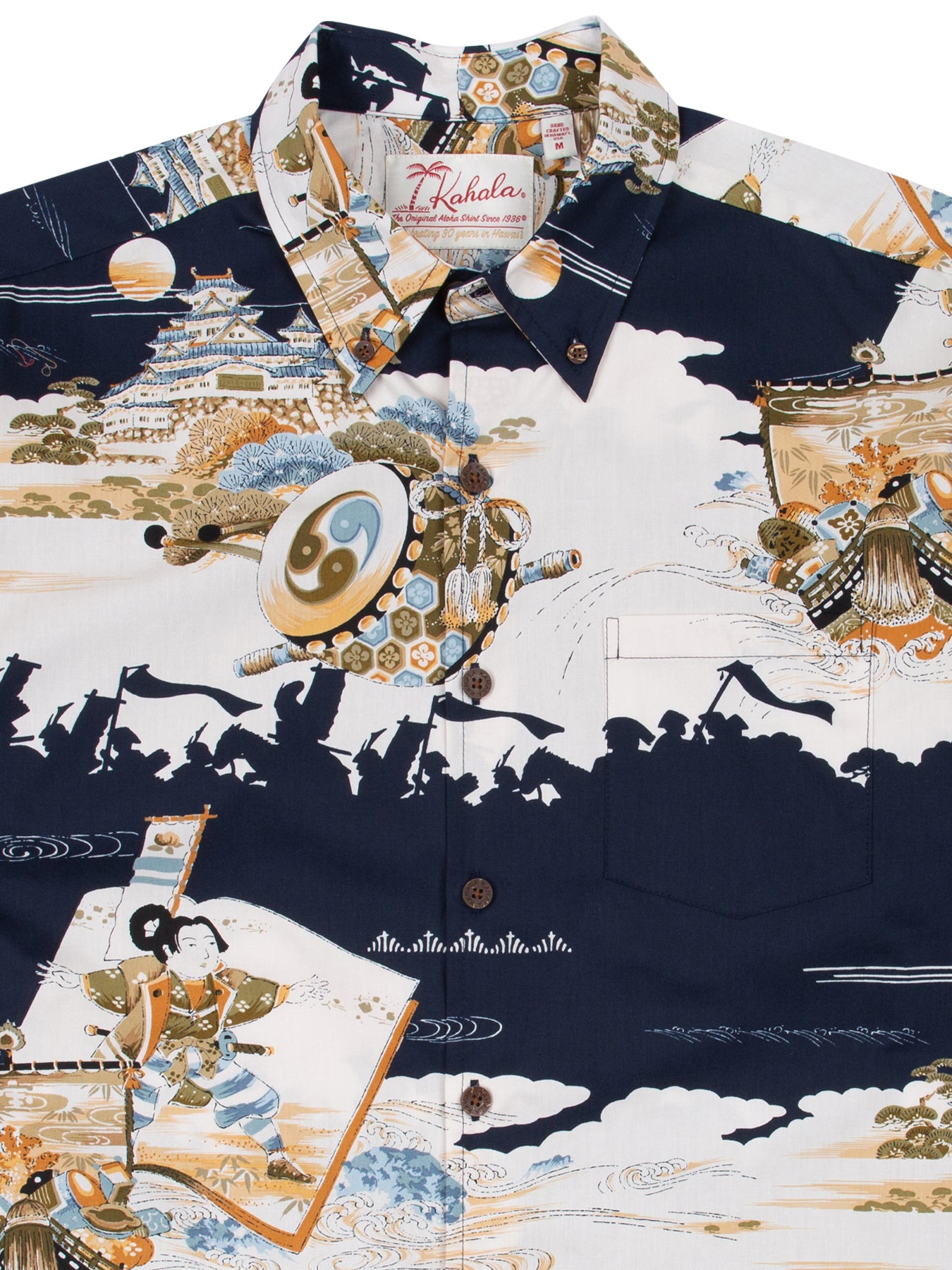 The vintage-inspired button-down collar, French front, and coconut buttons honor traditional aloha shirt silhouettes, while a matched pocket adds a refined touch. The bold, saturated colors are achieved with discharge printing, a technique that extracts dye from the fabric to reveal intricate motifs. Proudly made in Hawai‘i, Duke's Day embodies the Ambassador of Aloha in every stitch.