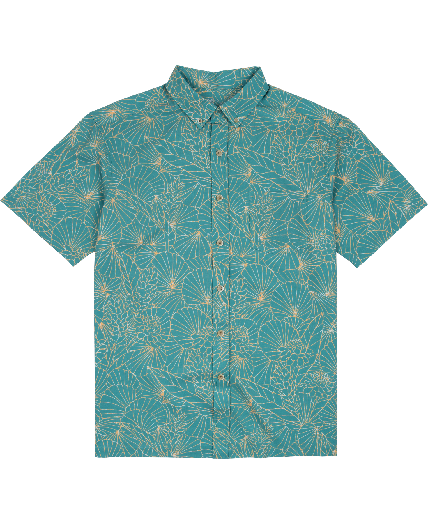 King’s Shells reflects Hawaiʻi in the 1950s, a decade when the aloha shirt stepped into the global spotlight. As air travel expanded and Hawaiʻi entered a golden era of tourism, aloha shirts began appearing in film, music, and popular culture, carried far beyond the islands. If you picture the era’s most iconic on-screen moments set in Hawaiʻi, this print feels right at home. Drawn from an original mid-century Kahala design, it pairs a shell motif with tapa-inspired patterning, emblematic of the era’s bold yet composed design language.