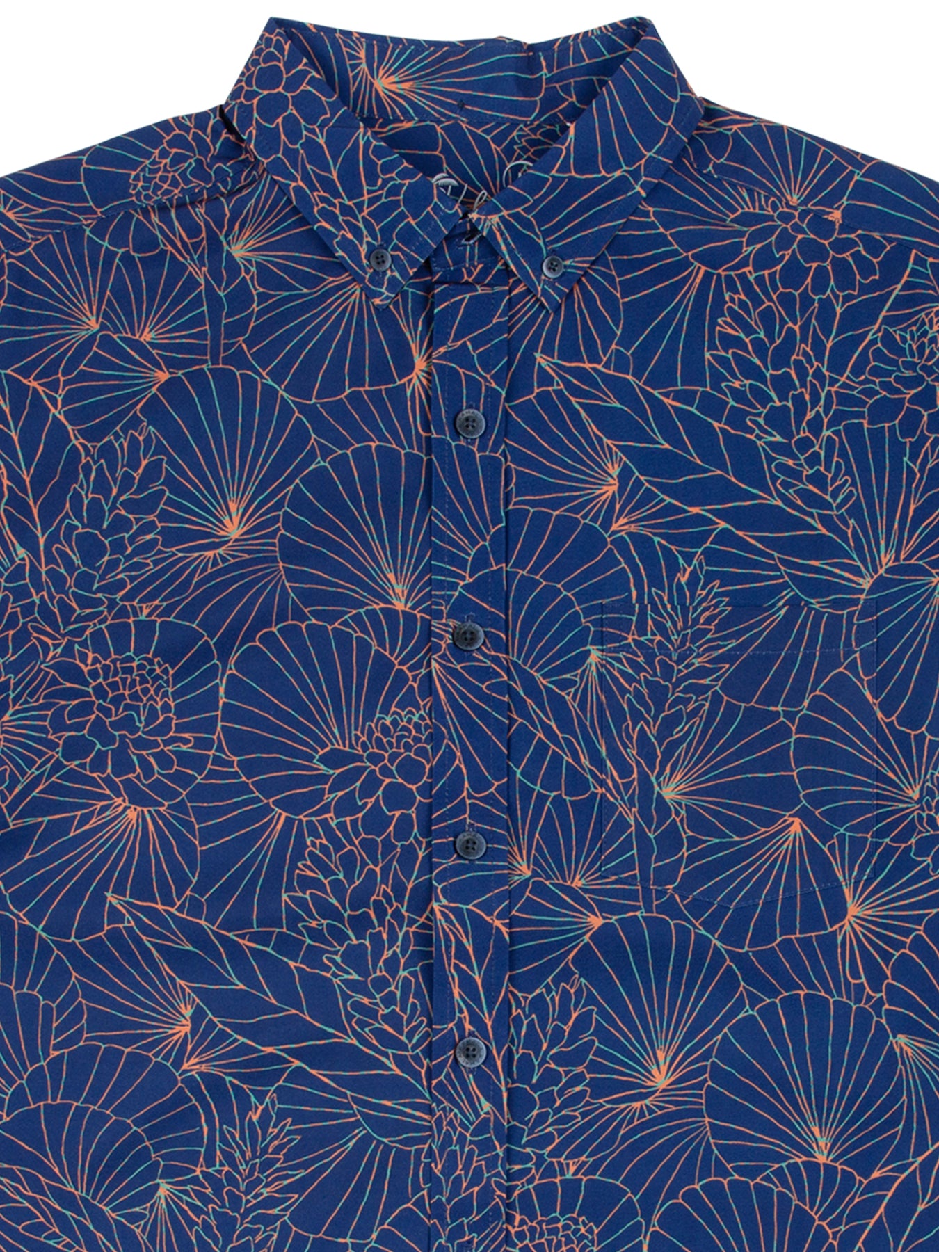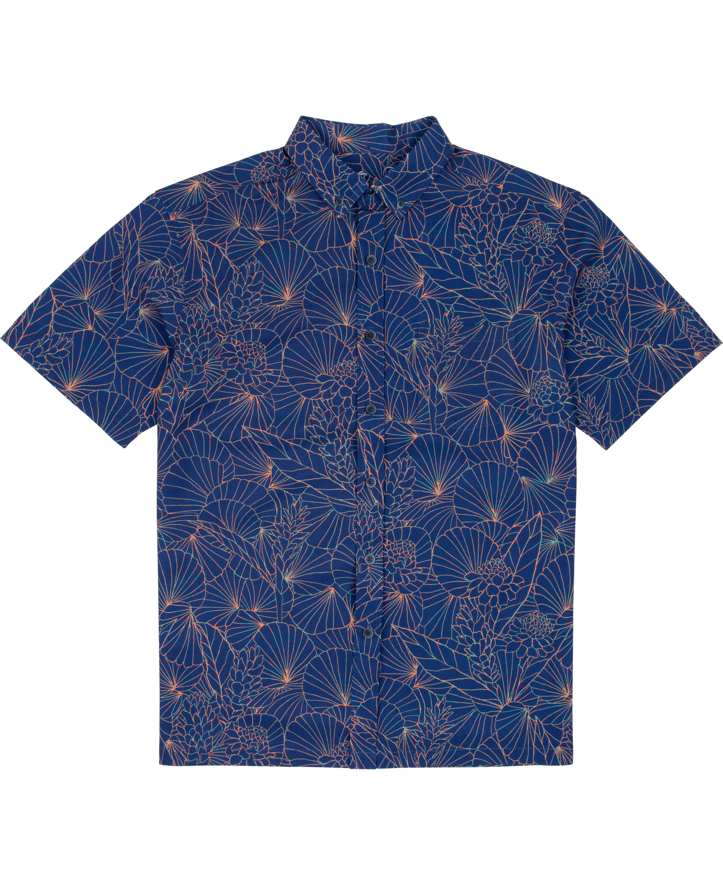 The vintage-inspired button-down collar and coconut buttons honor traditional aloha shirt silhouettes, while a matched pocket adds a refined touch. The bold, saturated colors are achieved with discharge printing, a technique that extracts dye from the fabric to reveal intricate motifs. Proudly made in Hawai‘i, Duke's Day embodies the Ambassador of Aloha in every stitch.