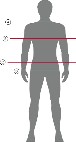 | 2XL | 19 | 49 - 51 | 42 - 45 | 36 ½ |